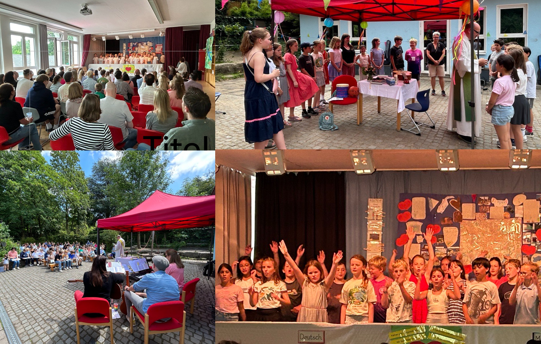 Die Einschulungsfeier beginnt mit einer Messe in der Meinolphus-Mauritius Kirche. Danach treffen sich die Kinder und deren Familien an der Schule. Es folgt eine kurze Begrüßung durch die Schulleitung und eine kleine Vorführung der ZweitklässlerInnen. Im Anschluss werden die Kinder durch ein Spalier von schön gestalteten Bögen geführt und offiziell in die Schulgemeinschaft aufgenommen. Während die Kinder ihre erste „richtige“ Schulstunde in ihrem Klassenraum verbringen, werden die Angehörigen im Elterncafé mit Kaffee und Kuchen versorgt.