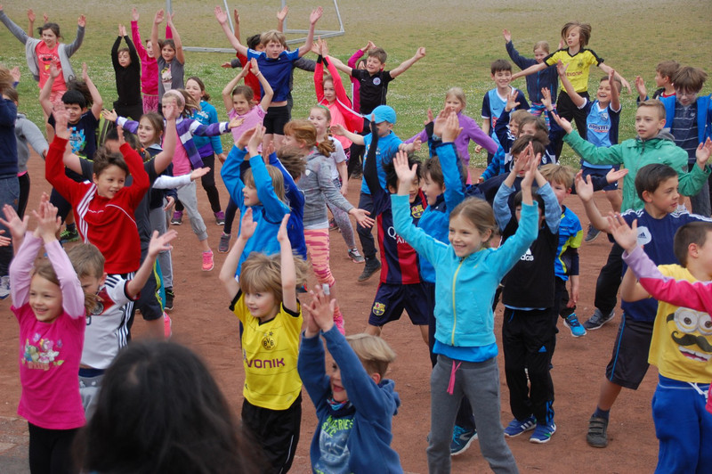 Alljährlich steht im Frühsommer das große Sportfest auf dem Programm. Die ganze Schule ist sportlich auf den Beinen und nach einem gemeinsamen „Warm-up“ geben alle Kinder beim Laufen, Werfen, Springen ihr Bestes. Unter großer Anfeuerung unserer zahlreichen Helferinnen und Helfer stellen die Kinder ihr Können unter Beweis und dürfen wirklich stolz auf ihre Leistungen sein, die bei jedem Kind mit einer Urkunde belohnt werden.
