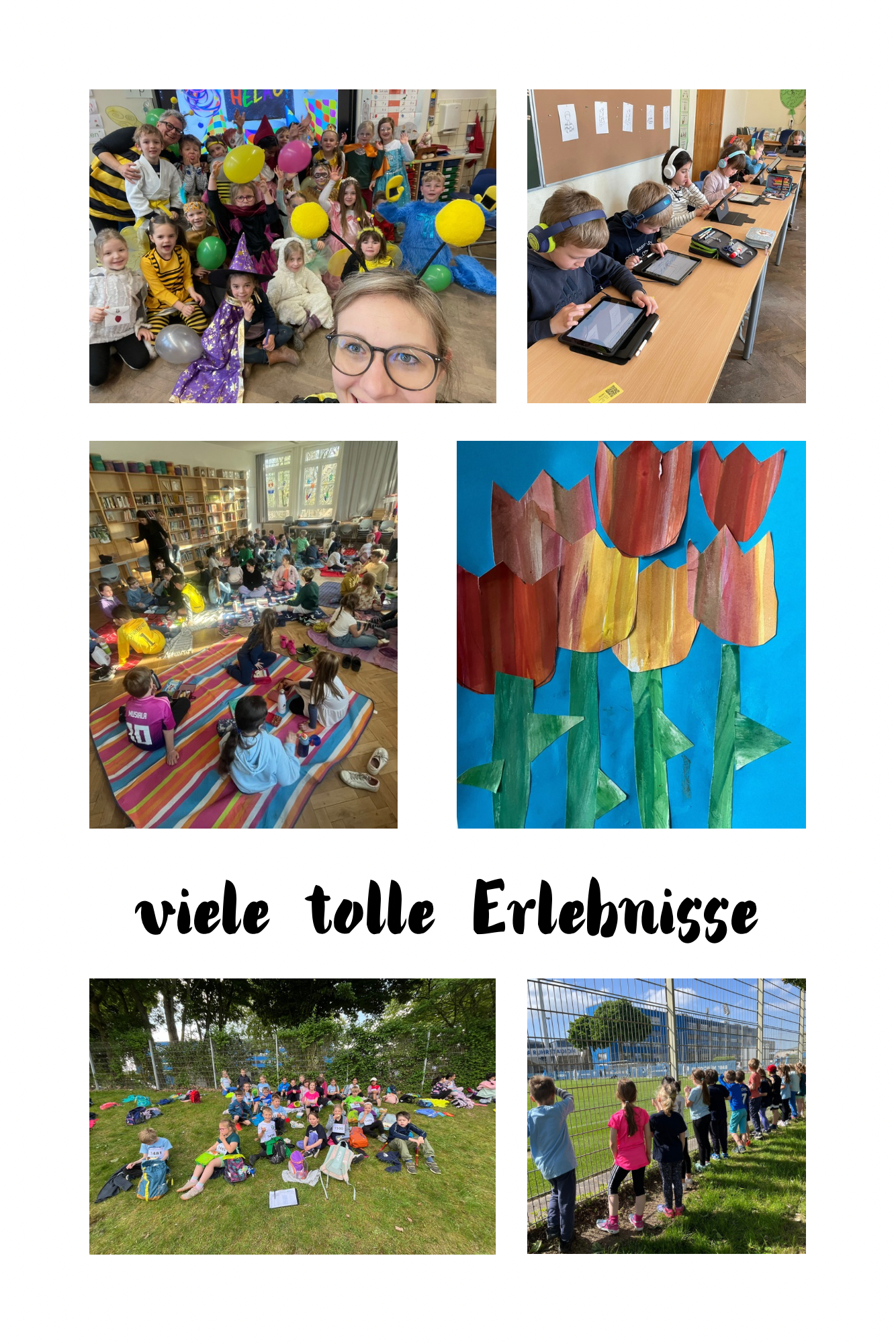 Karneval, erstes Arbeiten mit den IPads, Lesepicknick mit der Patenklasse, Sportabzeichen- Aktionstag mit Besuch des Trainings der VfL Profis…