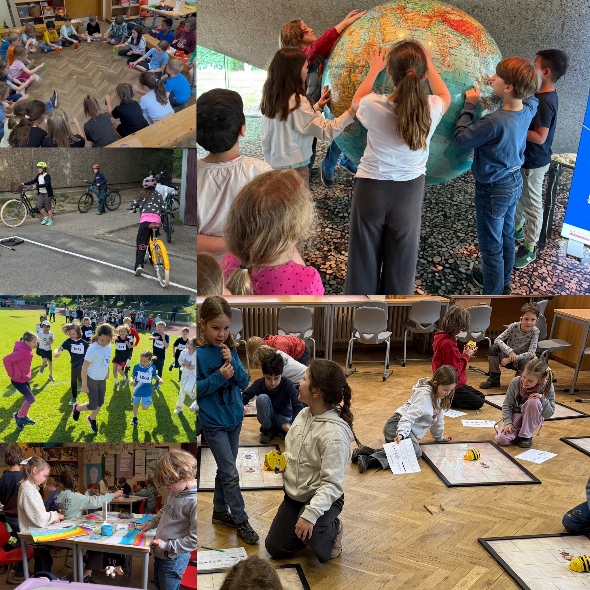 Ob beim Fahrradtraining, spannenden Sportevents, unserer Reise zu den Planeten, beim Musikmachen oder auf Schatzsuche mit unseren Bee-Bots – wir erleben jeden Tag etwas Neues.