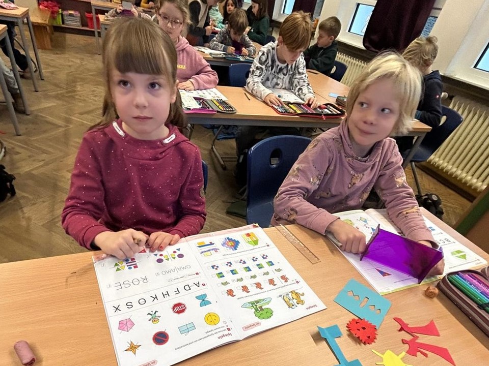 Bei uns gibt es immer etwas Neues zu entdecken: Gerade erforschen wir zum Beispiel im Matheunterricht symmetrische Formen.